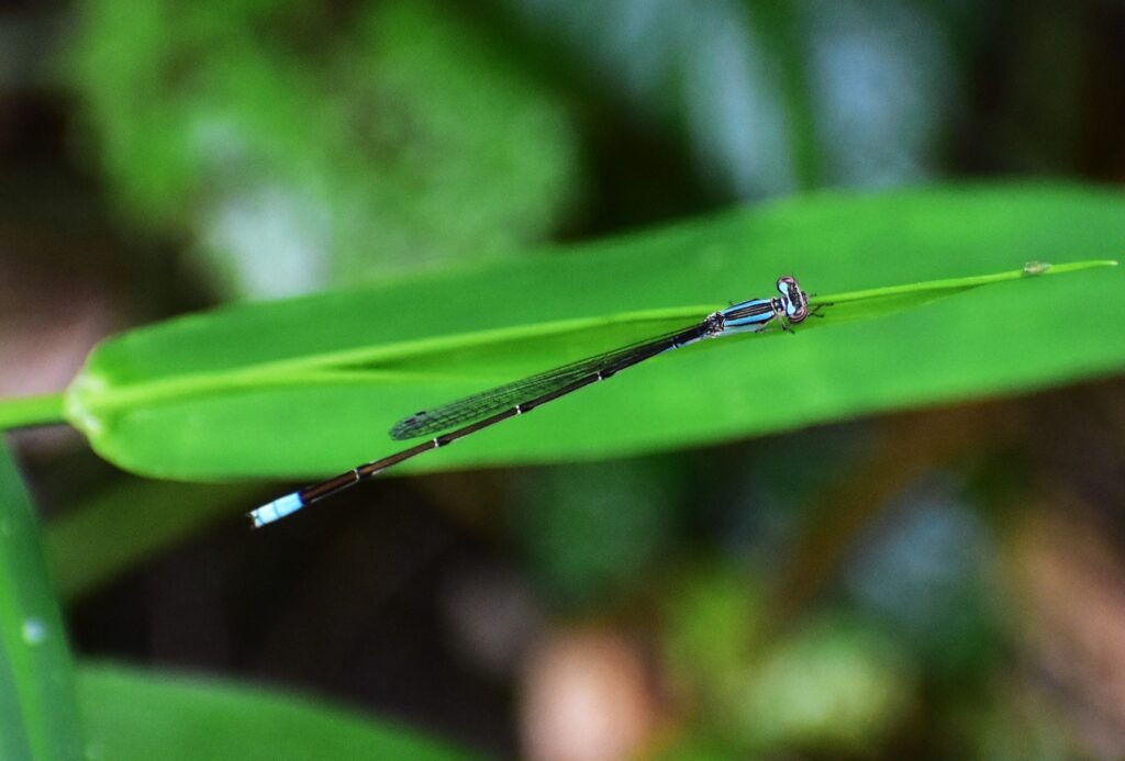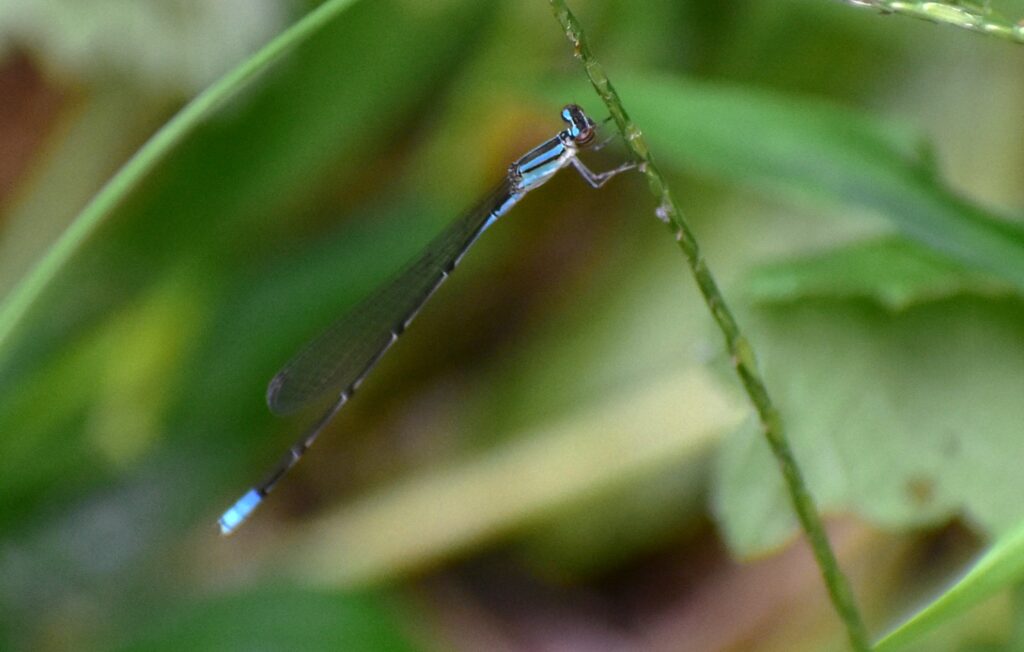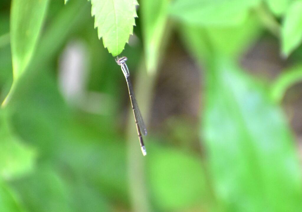 昨年9月に海津市森下の神社跡の境内の雑木林の林縁で見かけていたホソミイトトンボを、やっと1年振りに見かけました。このイトトンボは、昨年まで見かけたことはないイトトンボで、名前の通り、細く小さいイトトンボです。