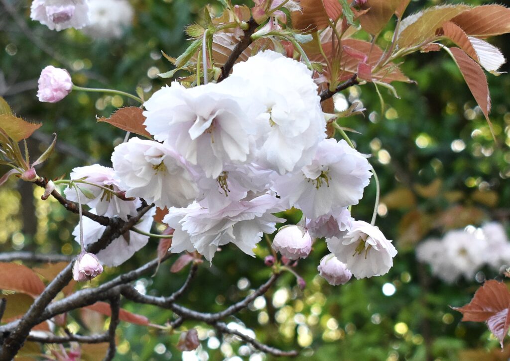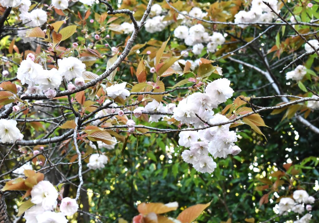 ところでサクラにはサトザクラといわれる、多くはヤエザクラである栽培種があるが、オオシマザクラとのかけ合わせによるものが多いようだ。